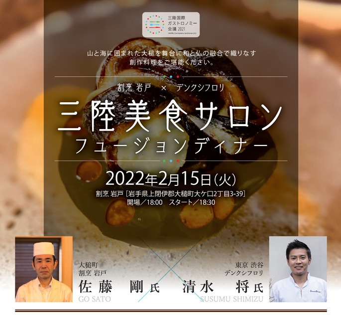 フュージョンディナー:県外の著名シェフが三陸を訪れ、地元の料理人とコース料理をコラボレーションして提供する一日限りのイベント- 申し込み