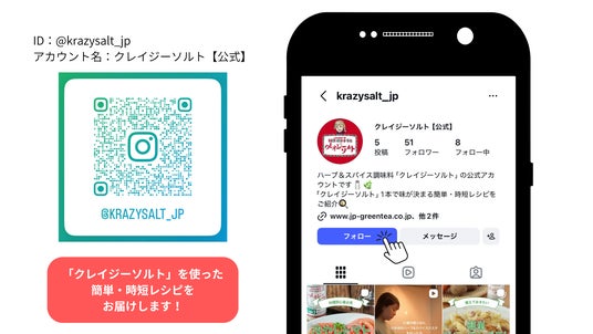 「ポンパドール」ハーブティー、「クレイジーソルト」、「茶語(Cha Y?)」、「ティーブティック」を手がける日本緑茶センター株式会社(本社:東京都渋谷区、代表取締役社長:北島大太朗)は、2026年3月27日(金)に「クレイジーソルト」の公式Instagramをオープンいたしました。
