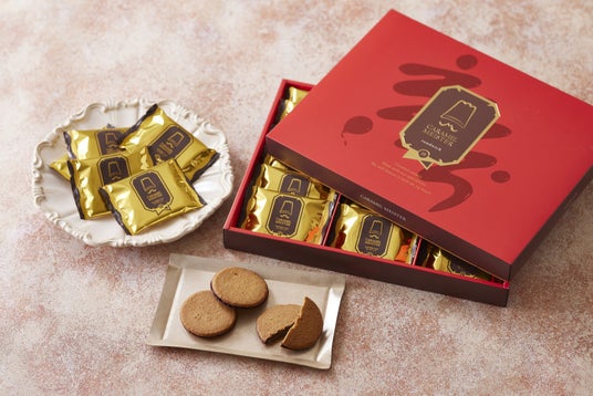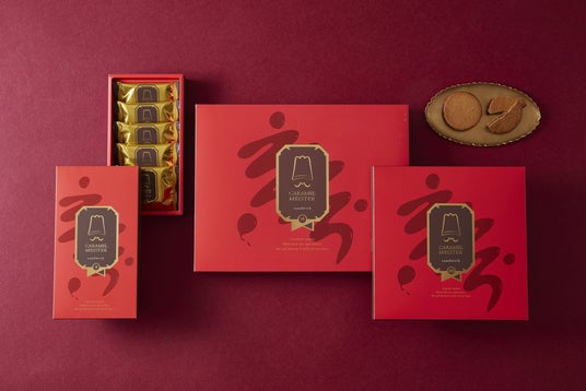 東京駅発の人気スイーツブランド『CARAMEL MEISTER』は、キャラメルの甘さとほろ苦さを最大限に引き出したサンドクッキー。融点の異なるチョコレートでとろりとした黄金色のキャラメルソースを包み、こだわりの厚みで焼き上げたクッキーでサンドしています。