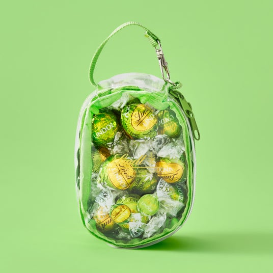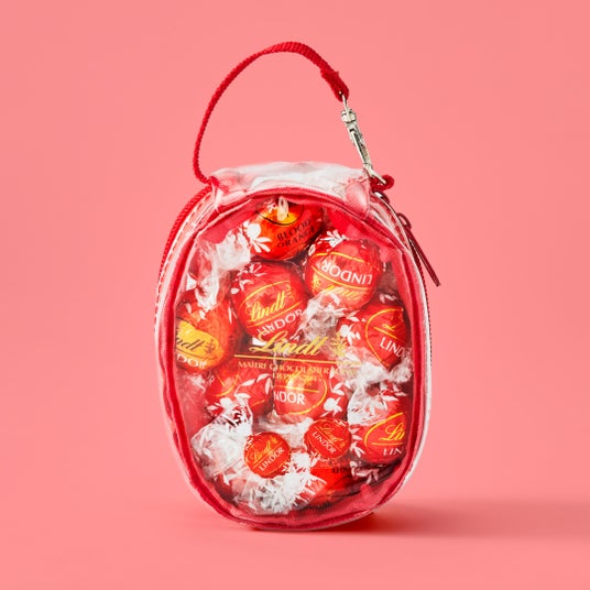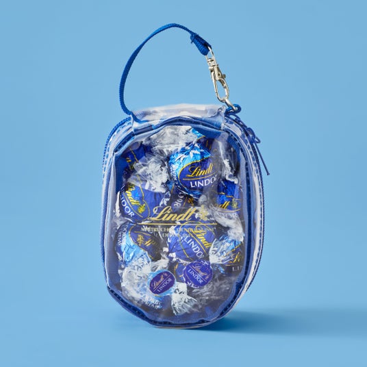 定番フレーバー「ミルク」や季節限定フレーバー「さくら&クリーム」、「ラズベリー&チーズケーキ」、「ナポリタン」など、さまざまなチョコレートをたくさん詰めてお楽しみいただけます。カラフルなリンドールが描かれたレッドとブルーのポップな専用バッグは、上のジップが閉まるまで詰めることができます。ご褒美時間を楽しむためのストック用や、家族や友達とみんなでシェアする用にもピッタリです。