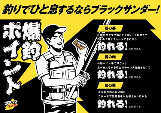 集中力と体力の持続が求められる釣りにおいて、適切なエネルギー補給はパフォーマンスを左右する重要な要素です。そんな釣りの行動食として、ブラックサンダーが持つ特長をユーモラスに表現したのが、3つの「爆釣ポイント」です。ブラックサンダーを食べたら、魚がたくさん釣れるかも!?
