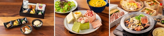食事付きの宿泊プランでは、下ごしらえした食材を冷蔵庫にセットしているため、宿泊者は簡単な調理をするだけで時間を気にせず自分たちのペースで食事をすることができます。夕食は、すき焼き、鴨鍋、テラスで楽しむ鉄板焼きの3種類から選ぶことができます。朝食は、「鰻とろご飯とおばんざいの和朝食BOX」と、箱根・仙石原の飲食店が監修した「葵ベーカリーカフェ監修 寄木細工パンと季節野菜のポタージュの洋朝食BOX」の2種類を提供しています。
