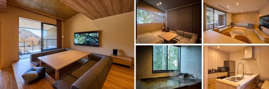 本施設は、箱根の豊かな自然に囲まれた、3棟20室からなるヴィラ型宿泊施設です。箱根旅行における交通の要所である箱根登山鉄道強羅駅から徒歩約7分と、観光の拠点としても便利なロケーションにあります。全室が2階建てメゾネットで、テラスを含めて100平米超のゆったりと利用できる造りとなっています。リビングにはテラスへとつながる大きな窓を設け、部屋にいながら外の景色を楽しめるほか、広々としたテラスでは箱根の自然を感じながら過ごすこともできます。また、開放感のある眺望が特徴である天然温泉のお風呂や、大画面に投影できるプロジェクター、充実した家電や調理器具等を備えたキッチンを完備しており、家族や友人同士で贅沢にくつろげるプライベート空間となっています。