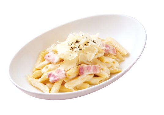 チェダーチーズ、パルメザンチーズ、ペコリーノチーズ、モッツァレラチーズの4種類のチーズと生クリームの濃厚なクリームソース。トッピングにはさらにパルメザンチーズを加え、よりチーズを感じていただけます。麺はソースの絡みがよい、生パスタのペンネを使用しています。