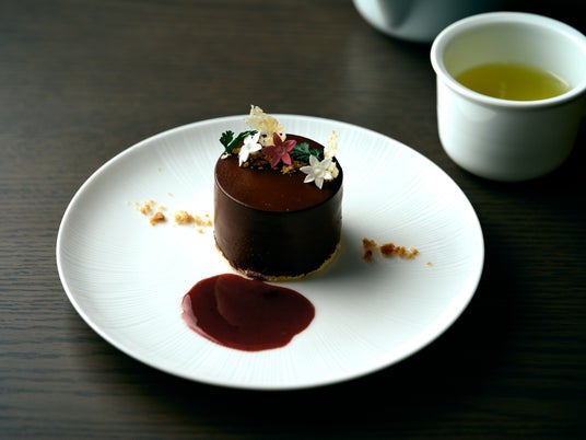 東京ミッドタウン日比谷1Fにある和スイーツと日本各地の魅力を楽しむカフェラウンジ「LEXUS MEETS...」は、期間限定メニュー「トヨタ×道セレクション」として、滋賀県高島市とコラボレーションした「アドベリーのチョコガナッシュと酒粕ムースのケーキ」のご提供を2026年4月17日(金)より開始いたします。
