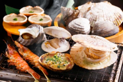 水槽から引き揚げたばかりの活貝や、一番人気の蟹味噌甲羅焼や魚介を目の前で焼きながら楽しめます。新鮮なお刺身や一品料理もご用意しております。丼ぶりや定食も充実した女性のお客様にも人気のお店です!一部店舗でランチ販売やデリバリー、テイクアウトも実施しております。