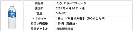 ダイドードリンコ株式会社(本社:大阪市北区、代表取締役社長:中島 孝徳)は、2026年春夏の新商品として、「ミウ スポーツチャージ」を4月20日(月)より発売します※1 ので、お知らせいたします。