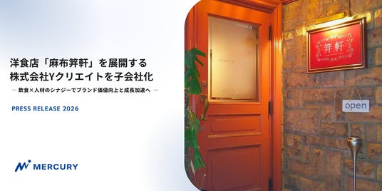 多様な人材の登用・育成を通して関わる人を豊かにする人材サービス会社、株式会社マーキュリー(本社:東京都新宿区西新宿1-26-2 新宿野村ビル23階、取締役社長:秋間 剛、以下「マーキュリー」)は、2026年3月27日付で、洋食店「麻布笄軒」を展開する株式会社Yクリエイト(本店:東京都港区西麻布、代表取締役:森山裕介)の全株式を取得し、子会社化したことをお知らせいたします。