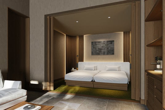 同ホテルは2026年7月22日に開業し、軽井沢の森に包まれながら“ ありのままへ、還る旅 ”を体験できる、全室スイート・プライベートサウナ付きの滞在を提供します。開業記念として宿泊料金20%OFFの特別プランもご用意。すべての宿泊プランにレストラン「心(SHIN)」での食事を含み、滞在を通して心身をゆるやかに整える時間を提案します。軽井沢駅から車で約5分というアクセスの良さと自然に囲まれた静かな環境も魅力です。建築設計はNAP建築設計事務所の中村拓志氏、インテリアデザインはJamo Associatesが手がけています。軽井沢の自然に溶け込むよう設計された空間は、滞在を通して過ごす人それぞれの感覚にやさしく寄り添い、本来の自分へと立ち還る時間を支えます。
