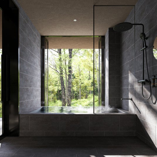 森の景色を望む開放的なバスルーム