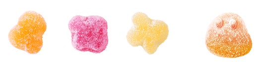 グミ粒は従来と同様、高低差のあるいびつでゆるい癒し系の形で、噛む場所によって異なる食感をお楽しみいただけます。レア型として、「むにょむにょくん」が入っているかも。