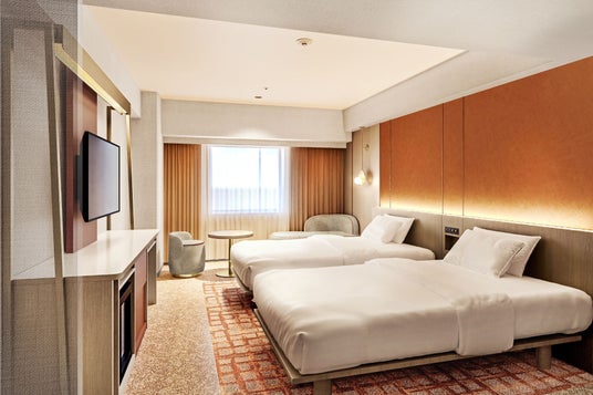 カップルやご夫婦におすすめの、ゆとりある広さで快適な滞在を叶えるツインルーム。キャナルシティ博多の渓谷をモチーフにしたデザイン空間で、優雅で落ち着いた滞在をお楽しみいただけます。