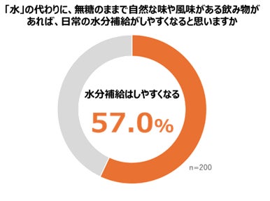 このような課題に対して無糖で自然な風味がついた水への関心は高く、57.0%が「無糖のままで自然な風味があれば水分補給がしやすくなる」と回答しました。レモン水などの無糖のフレーバーウオーターが水分補給の課題を解決する手段となり得ることがうかがえる結果となりました。
