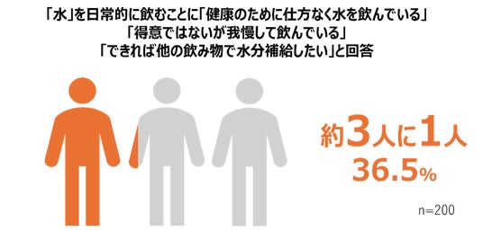 水を日常的に飲むことについて3人に1人が「健康のために仕方なく水を飲んでいる」「我慢して飲んでいる」「できれば他の飲み物で水分補給したい」といった消極的な意見を挙げており、水による水分補給の課題が浮き彫りになりました。