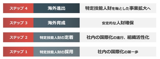 ■特定技能人財の採用を起点とした海外進出は、企業成長プロセスの最終ステップ