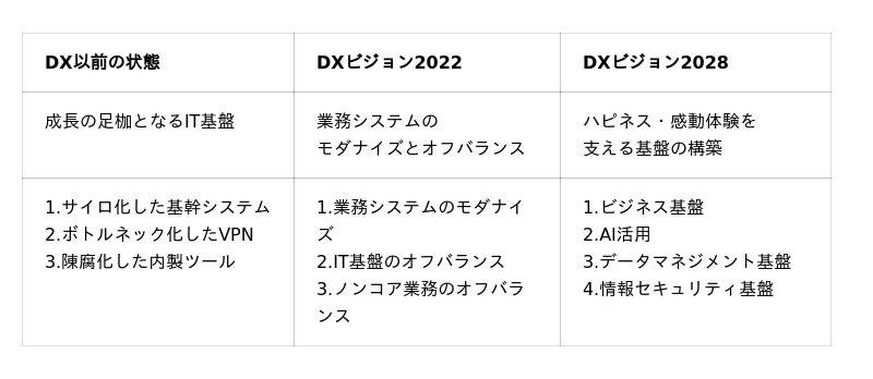 例えば、DXビジョン2028の「1.ビジネス基盤」では、以下のような取り組み事例があります。