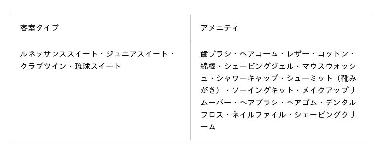 ■変更したアメニティ一覧(スタンダードタイプ)