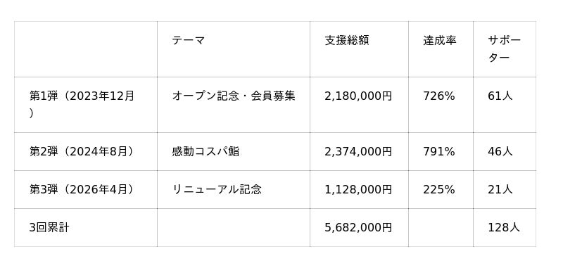 なお、Makuakeプロジェクトは現在も応援購入を受付中です。超早割コース(1名23,000円~)や8名貸切プラン(188,000円)など、新店舗をいち早く体験できるリターンを用意しています。