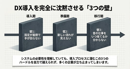 DXONEは、導入現場で繰り返し見えてきたハードルは、主に次の3つだと考えています。