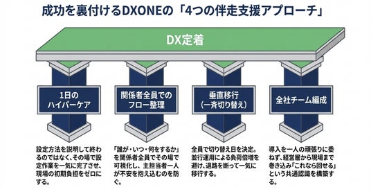 - 「これなら回せる」と感じてもらえる状態をつくることが、成功の出発点だとDXONEは考えています。