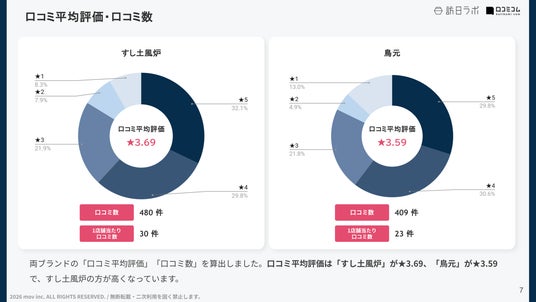 - 調査対象:すし土風炉(16店舗)と鳥元(18店舗)