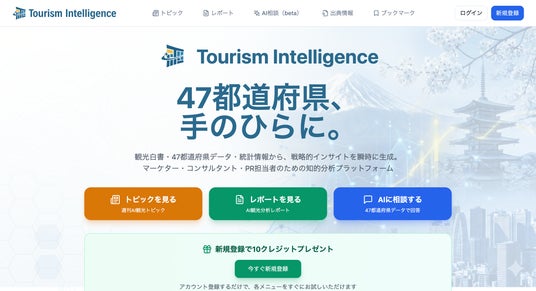 Tourism Intelligenceへの新規登録で10クレジットを無料プレゼントしています。AI相談をはじめ、各種機能をすぐにお試しいただけます。本件に関するお問い合わせ先