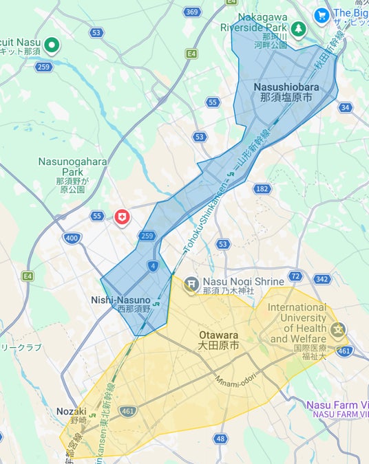 - 福島県:西郷村、白河市