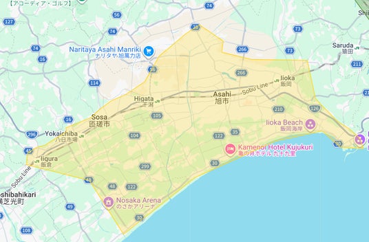 - 千葉県:旭市、白子町、匝瑳市(黄色部分。青色部分は既存提供エリア)