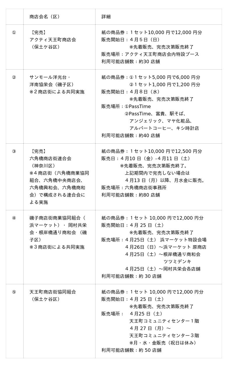※上記詳細は予定であり、販売状況を含めた商品券の詳細は、各商店会にお問い合わせください
