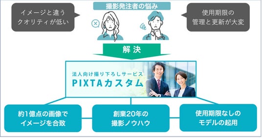 2023年に法人向け撮り下ろしサービス「PIXTAカスタム」のサービスを開始して以来、おかげさまでたくさんのお客様のビジュアルへの課題をお聞きし、撮影を実施してまいりました。そのなかで、商品やサービスの魅力を伝えるビジュアル制作のためには、モデルを起用する重要性を目の当たりにしてまいりました。