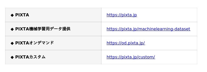 「PIXTA」はプロ・アマチュア問わず誰もが自ら制作した写真・イラスト・動画・音楽をインターネット上で売買できるデジタル素材のマーケットプレイスとして2006年5月にスタート。「日本人や日本文化に関わる画像・動画素材ならPIXTA」と評される国内最大のデジタル素材サイトです。近年は広告などのクリエイティブ制作分野への素材提供のみならず、機械学習をおこなう企業や学術機関向けにAI開発用の学習データとしての画像・動画素材を提供。アノテーションサービスと共にAI開発の支援もしています。併せて、写真の撮り下ろしサービスとして、全国のフォトグラファーとマッチングできる法人向け出張撮影「PIXTAオンデマンド」や、モデル・ロケーション手配や撮影ディレクションまで撮影にかかる一切を請け負う「PIXTAカスタム」を展開し、ビジュアルプラットフォームとして企業の様々なビジュアルニーズに対応しています。