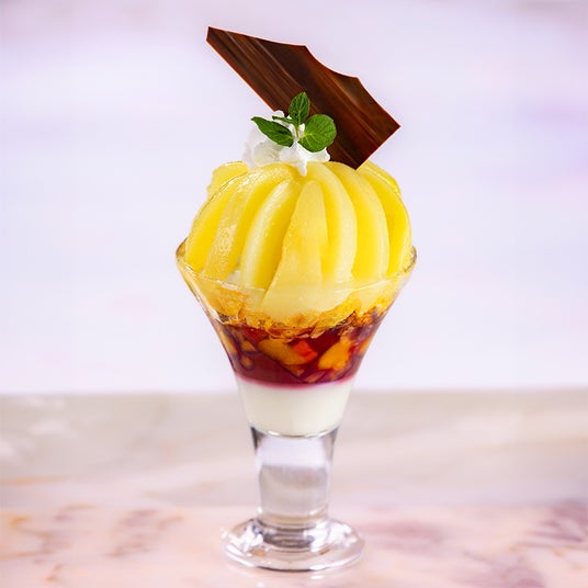 白桃をスターアニスやシナモンといったスパイスの甘い香りでふんわりと包み込むようにコンポート。香りと甘さが重なり合う、初夏だけの贅沢なプレミアムパフェです。