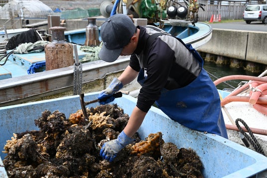 出荷を目前に控えた岩がきの選別作業を、舞鶴湾内の養殖イカダの上で公開いたします 。約3~4年間、丹精込めて育成されてきた岩がきが水揚げされる迫力ある現場を取材しました。