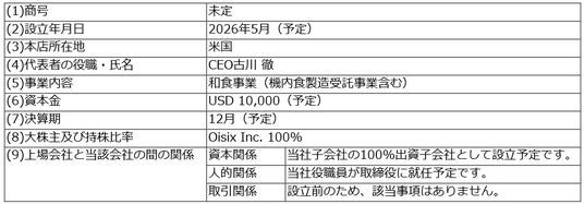 当社は、国内のBtoCサブスク事業(食品宅配事業)に加え、2024年のシダックスのフード事業の子会社化以降、BtoBサブスク事業(給食事業)へと事業領域を拡大してまいりました。今回の米国の和食事業(機内食製造受託事業含む)の譲り受けによって、米国のBtoB市場へ初参入します。事業譲受は2026年6月を予定しています。