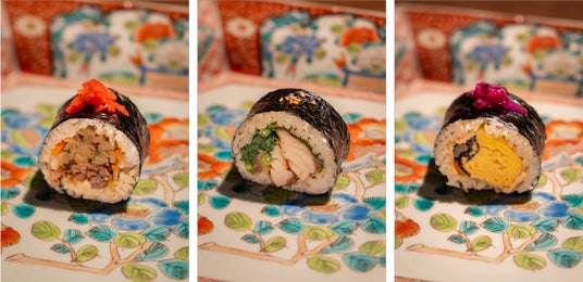 オーディオテクニカ製ののりまきメーカー(※1)が精緻に巻き上げたロールをベースに、和田彩加氏が厳選した季節のおばんざい・味付けで開発。