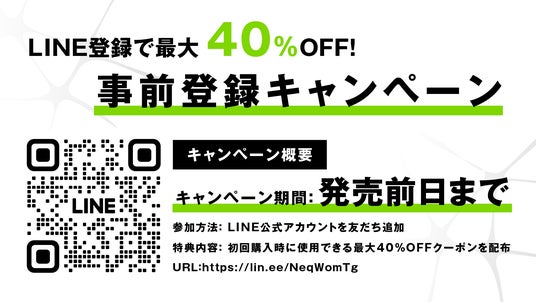 発売に先駆け、本日より公式サイトの公開、およびLINE公式アカウント登録で「最大40%OFF」となる事前登録キャンペーンを開始しました。