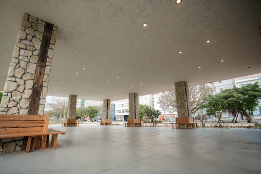 この店舗の大きな特徴が、併設された「大屋根ひろば」です。沖縄の気候特性を踏まえ、人が集い、守られ、日常と非常時の双方で機能する空間として、地域のみなさまのさまざまなシーンでの利用が想定されています。日常においては、猛暑日には休憩スペースとして、スコールなどの急な降雨時には一時避難や雨宿りの場として活用されます。また、災害時には地域の方々を支える避難・支援拠点としての役割も担います。さらに、平常時にはコナズ珈琲のテイクアウトメニューを楽しめる飲食スペースとしても利用でき、誰もが気軽に立ち寄れる場となっています。