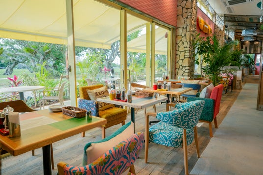 カラフルなハワイアン雑貨やサーフボードが飾られ、遊び心のあるソファやテーブルなどのこだわりのインテリアが、まるで、ハワイのローカルのリビングにいるような雰囲気を演出します。ゆったりとくつろげる空間で、日本にいながらハワイ気分を味わえます。