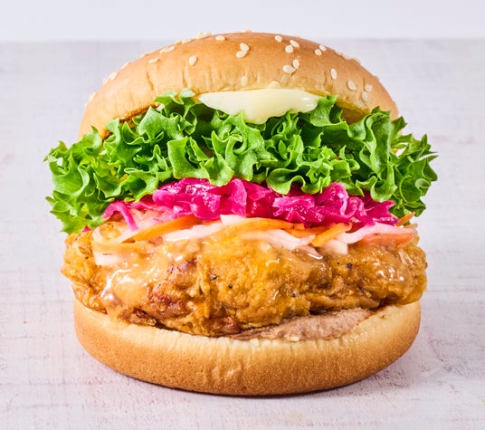 タイの屋台料理として親しまれるカオマンガイを、バーガースタイルで表現。店内調理のジューシーなクリスピーチキンに、甜麺醤をベースにコチュジャン、オイスターソースを合わせたオリジナルソースやたっぷりの針生姜・トマトを合わせ、旨みと辛み、香りのバランスを追求。旬の国産フレッシュパクチーの風味がアクセントとなり、本格的でありながら食べやすい一品。