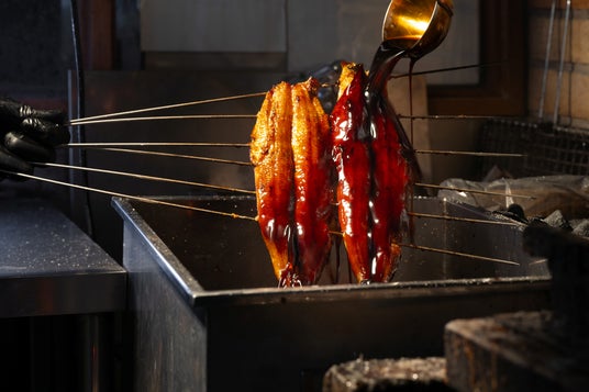 常に最高品質の国産うなぎを求め、季節に合わせ産地(浜名湖、宮崎、鹿児島等)を厳選し、最も良い うなぎを選別して産地直送で仕入れています。うな金のうなぎは通常より大きめのサイズ。一般的にうなぎ店で供される約250gに比べ、身が厚く脂の乗りも良い、旨みを実感していただけます。〇秘伝のたれ