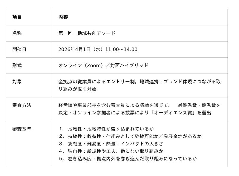 こうした実践をさらに広げ、組織全体として地域との価値創出を加速させていくことが、今後の重要なテーマです。その取り組みの一つとして開催されたのが「地域共創アワード」です。