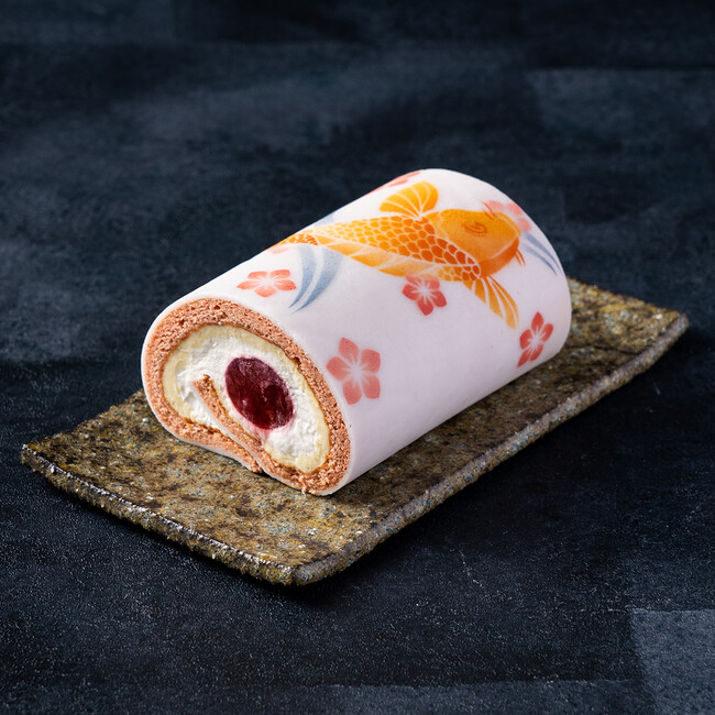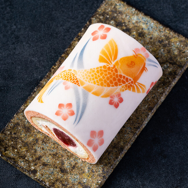 子どもの健やかな成長の願いを込めて、鯉のぼりを描いたロールケーキ。