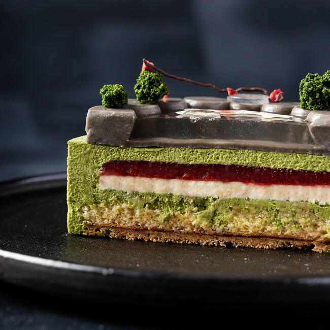 日本庭園で過ごす時間のように、コロナ禍を経て心穏やかに暮らしていけるようケーキに願いを込めて作りました。和の素材をふんだんに使い作り上げるスイーツ。