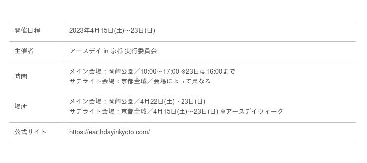 「アースデイ in 京都2023」について
