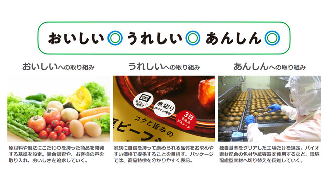 ファミマルのコンセプトは「ファミリークオリティ」。目指すのは大切な家族に安心してお薦めできる品質と安全性です。また、「おいしい◎うれしい◎あんしん◎」をキーワードに、お子さまからご高齢の方まで、誰にでもわかりやすい伝え方で、魅力を発信してまいります。