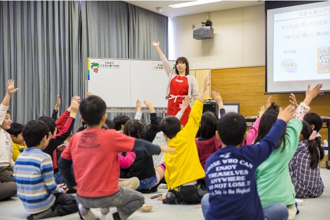 マルヤナギが創業以来扱ってきた豆、昆布、もち麦などの雑穀、さつまいもやごぼうといった根菜類などの日本の伝統食材は、食物繊維を豊富に含んでおり、慢性的に食物繊維が不足している現代の日本人にとって大切な食材です。「伝統食材の素晴らしさを次の世代へ」をテーマに、これら伝統食材のおいしさや健康価値を時代や人に合わせた形でお伝えする授業を、小学校、高等学校、専門学校などに赴き実施しています。
