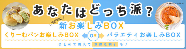 『お楽しみBOX』は先月からリニューアルし、くりーむパンのみを楽しみたい方向けの「くりーむパンお楽しみBOX」と、「バラエティお楽しみBOX」の2種類にバージョンアップしています。
