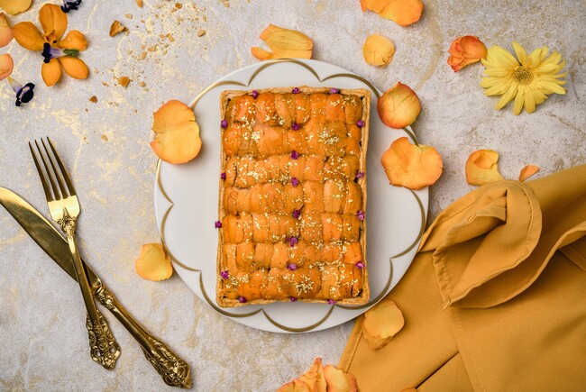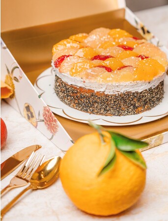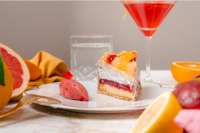 季節ごとの新作タルトも作っており、こちらの国産柑橘を使用したシトラスタルトは、2023年の新作。アイスクリームを添えてアフタヌーンティーや、フルーツカクテルと一緒にいただくのもおすすめ。タルトを購入すると、ゴールドの飾りのついたオリジナルの陶器のお皿と美しいボックスがついてきます。ギフトにも大変お勧めです。