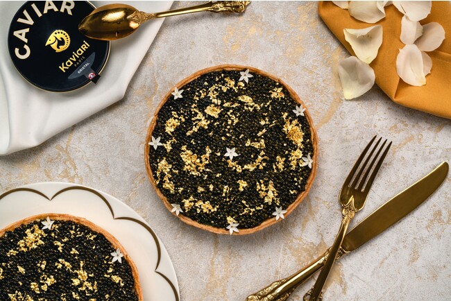 こちらが、キャビア&タラバガニタルト。フランスカヴィアリ社の高級キャビアクリスタルをたっぷり使用しています。フレンチの前菜のようなタルト。シャンパーニュとよく合います。