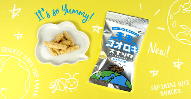 とにかく食べやすくおいしいお菓子やおつまみを目指して開発した「未来コオロギシリーズ」。国産米と旨味成分・グルタミン酸たっぷりのコオロギ粉末をパフ化したラーメン味のスナックは、ビギナーでも抵抗なく召し上がれます。